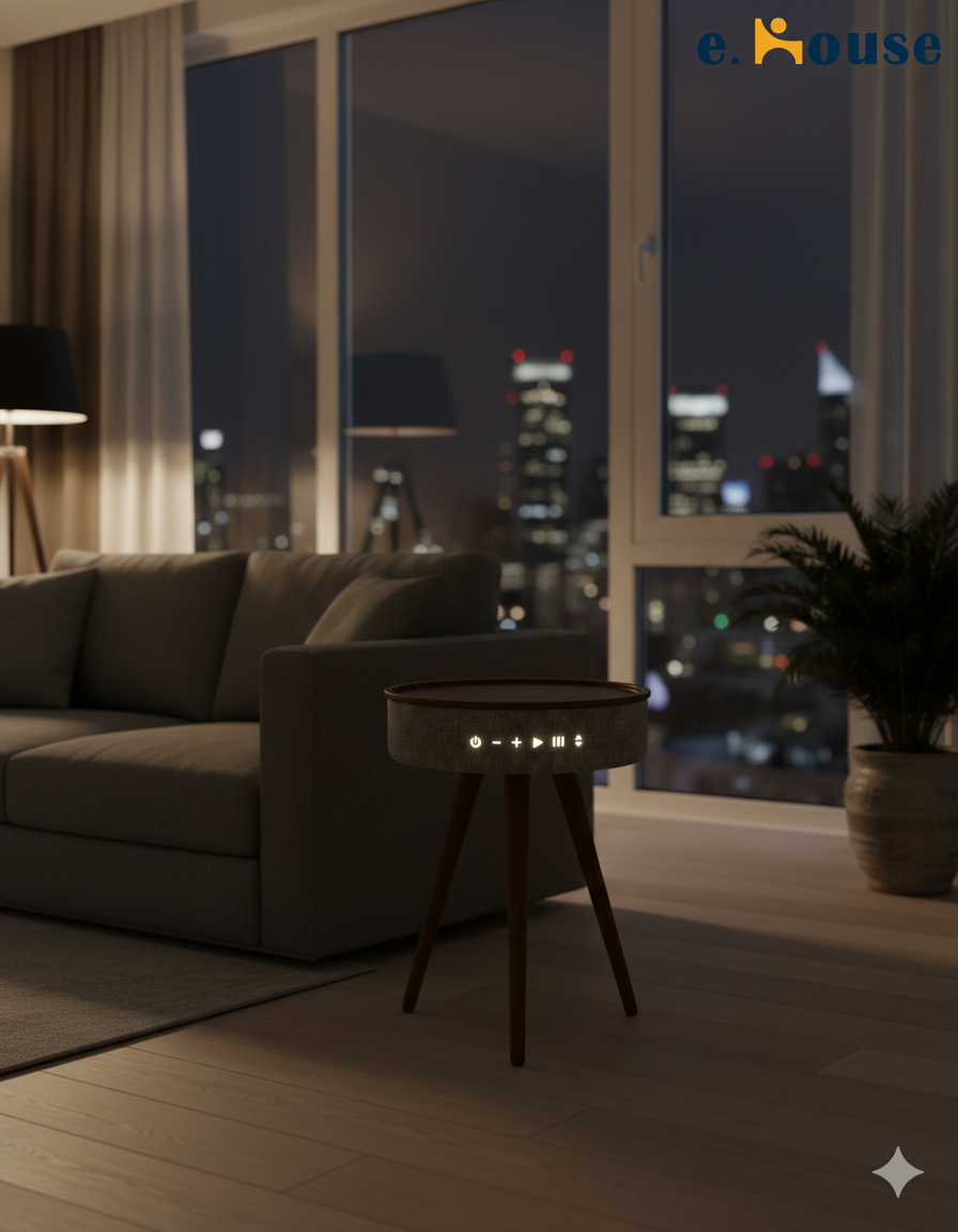 ترابيزة جانبية ذكية بتصميم عصري أنيق، تجمع بين الأثاث العملي والتقنية الحديثة في قطعة واحدة.